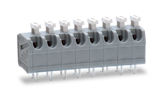 無(wú)螺絲接線(xiàn)端子 節(jié)距 5mm 直角按鈕環(huán) 絞合 單線(xiàn) PCB 安裝 分立式尼龍 UL CSA TUV 94V-0